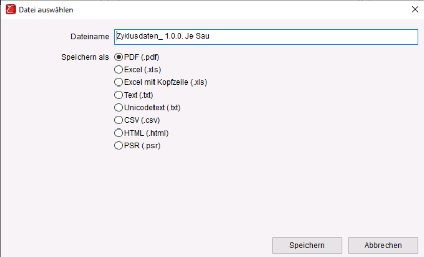Es ist möglich, Berichte in verschiedenen Formaten zu exportieren. Drücken Sie dazu die Schaltfläche „Exportieren“, geben Sie einen Namen für den Bericht und das Format ein. Durch Drücken von Speichern wird in der unteren rechten Ecke des Bildschirms ein Download-Fenster angezeigt. Nach Bestätigung der Eingabe wird eine Datei auf Ihren lokalen PC heruntergeladen.