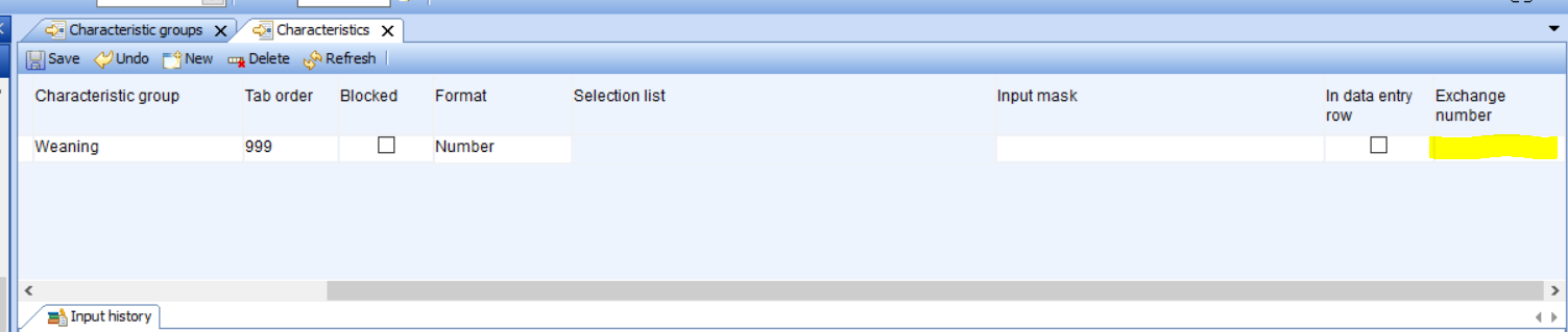 Um die Funktionscodes einzustellen, gehen Sie zu "Setup" → "Codes" → "Merkmale". Wählen Sie das Merkmal aus, das Sie in den Austausch einbeziehen möchten, und fügen Sie den entsprechenden PICtraq Merkmals Schlüssel ( Zahl ) in das letzte Eingabefeld ein: "Austauschnummer".