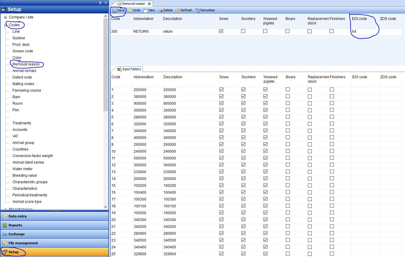 Gehen Sie zu „Setup“ → „Codes“ → „Abgangsgründe“. Wählen Sie den Abgangsgrund aus, zu dem Sie einen PICtraq- Abgangscode hinzufügen möchten, und geben Sie den Code unter EDI-Code ein. Eine Tabelle mit den PIC EDI Abgangscodes finden Sie unten in dieser Anleitung. Drücken Sie auf "Speichern".