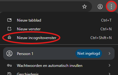 Klicken Sie im Browser auf die drei Punkte und wählen Sie „Inkognito-Fenster“ (in Chrome) oder „InPrivate-Fenster“ (in Edge).
