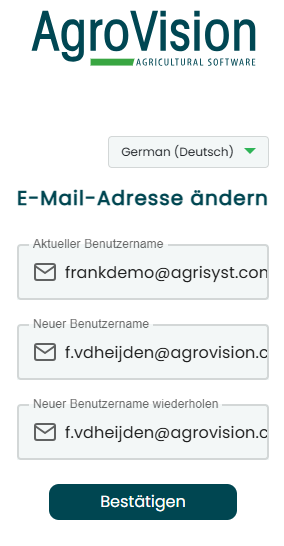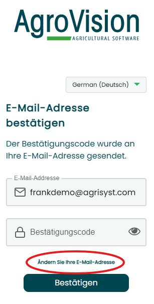 - Nachdem Sie die Bestätigungs-E-Mail akzeptiert haben, können Sie die Schritte zur Registrierung bei MyAgrovision wiederholen.