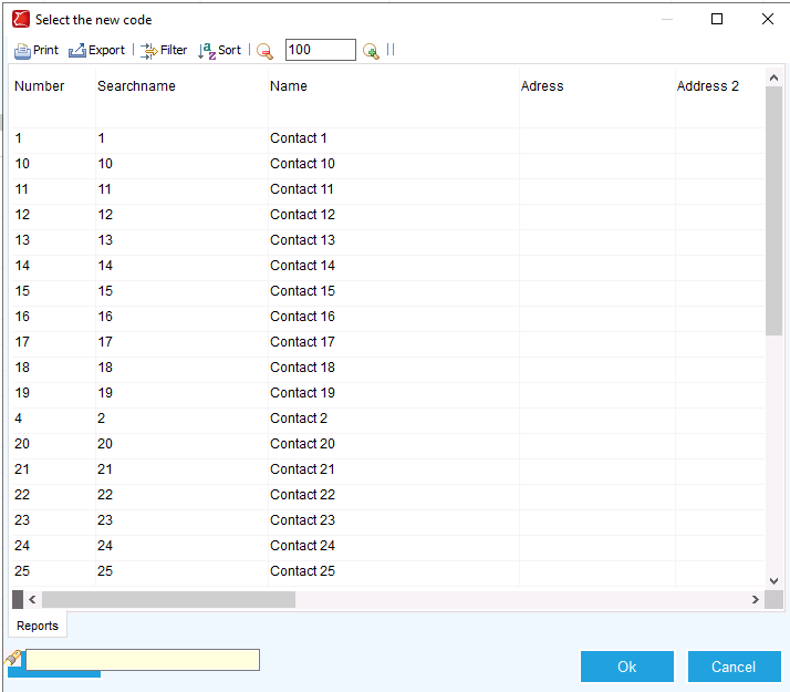 When you click OK, the contact will be renumbered to the newly selected contact for all events where the old contact was used.