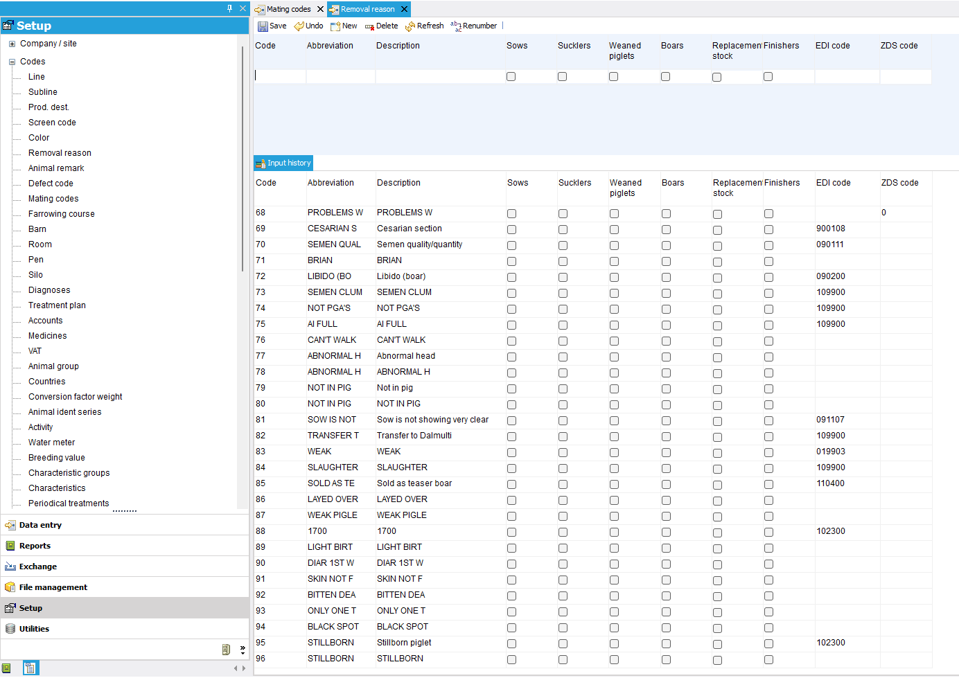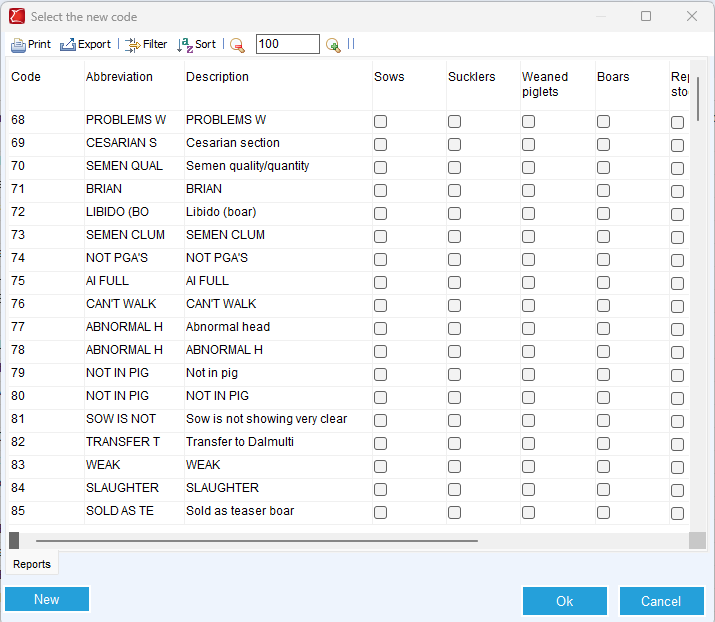 In some cases, there is an animal category to choose from, where you can indicate the animal type to which the code applies; by setting this up correctly, you will maintain a clear overview when entering an event.