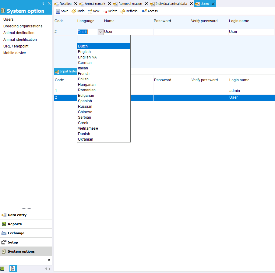 PigExpert is available in multiple languages. Users are set up to see the database in their preferred language, but it is possible to change the language settings if desired.
