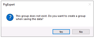 If the animal group does not yet exist, PigExpert will ask whether the animal group should be created. Click YES.