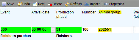 When you select an existing group, PigExpert will fill in the location of the group itself. In the case of a removal event, the available arrival dates will also be limited to the arrival dates from the group.