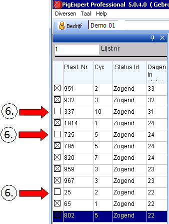 If there are animals that have not been weaned, you can remove the check mark in front of the number. This will prevent the animal from appearing in the work list.
