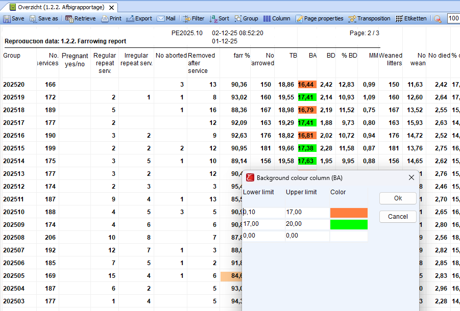 You can then set the colors for the relevant column yourself, corresponding to a lower and upper limit that you have set yourself.