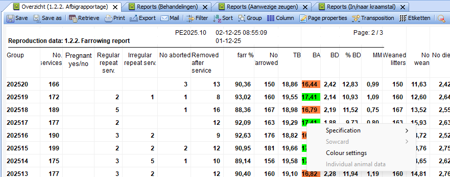 To do this, right-click in a column of the overview and select ‘Color settings’.