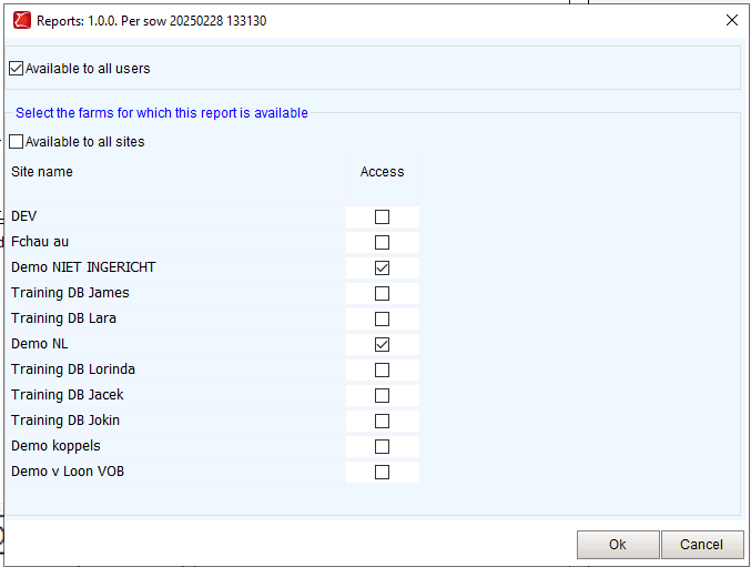 If this is not the case, you can uncheck the option and select the companies that should have access to the report.