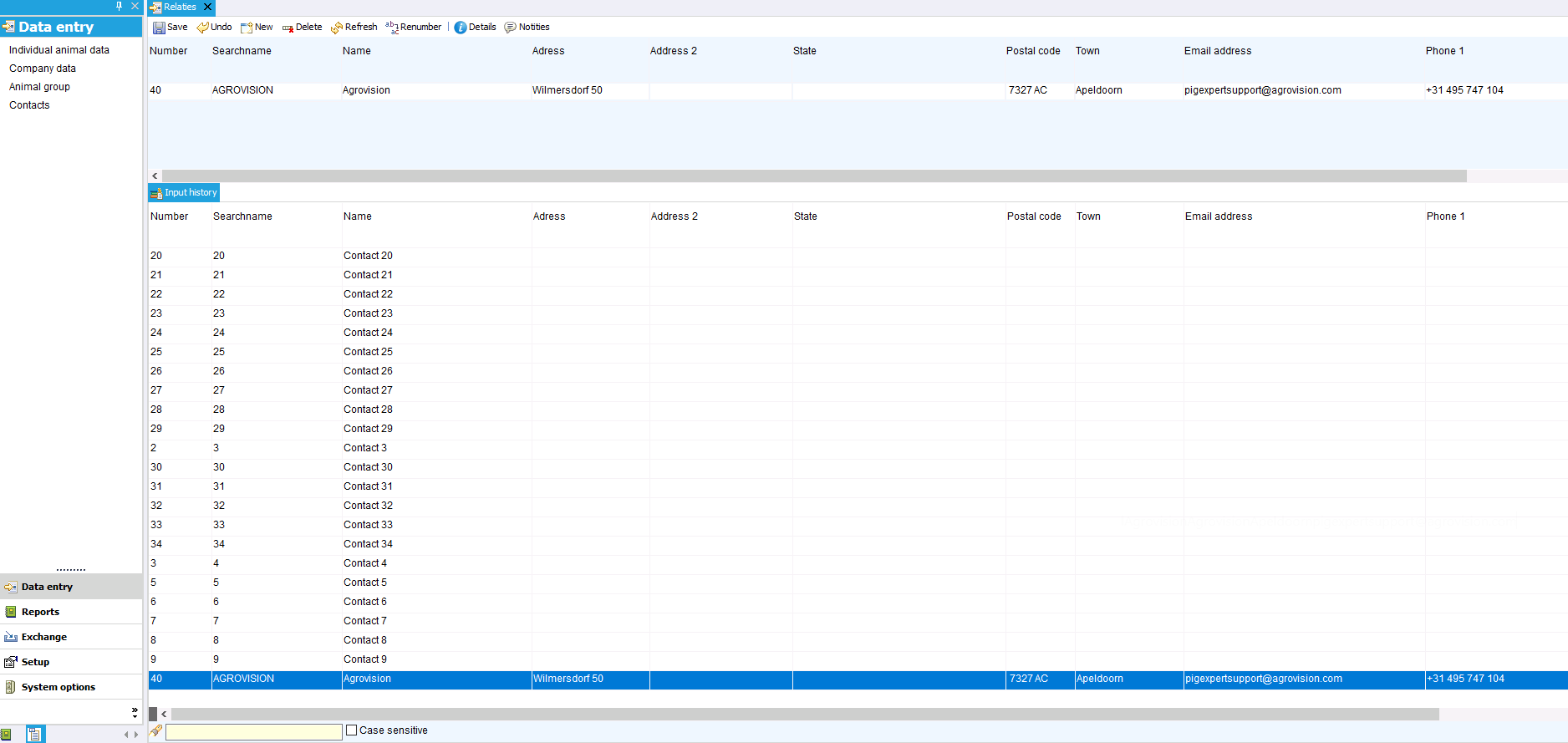 Go to Data entry -> contacts to view and edit existing contacts or to add new ones.