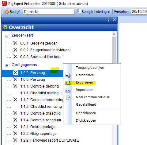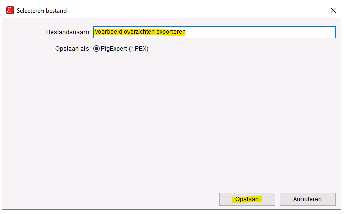 Volg deze stappen om overzichten uit PigExpert te exporteren: