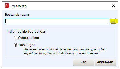 - Als je meerdere overzichten wilt exporteren, kun je deze na het eerste toevoegen zonder een nieuwe naam in te voeren.