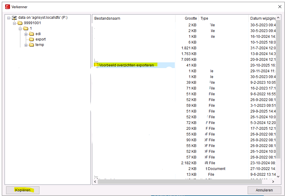 - Zodra alle overzichten zijn geselecteerd voor export: