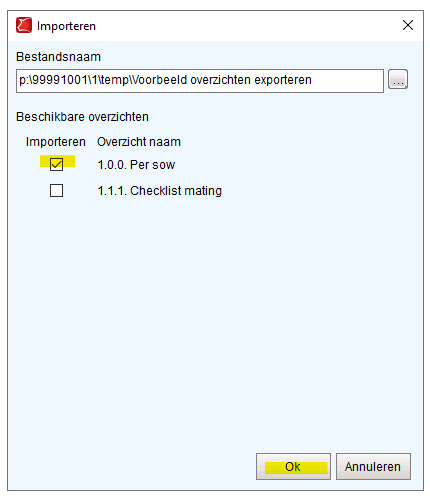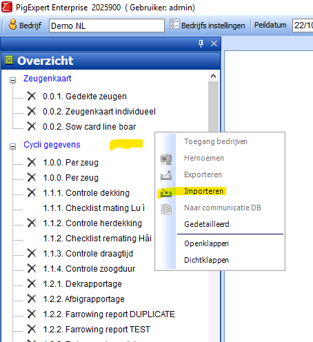 Volg deze stappen om overzichten in PigExpert te importeren: