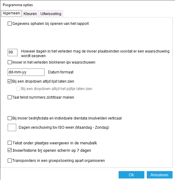 Programma opties zijn instellingen die voor alle bedrijven en gebruikers in de database gelden.