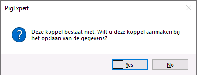 Als het koppel nog niet bestaat zal PigExpert vragen of het koppel aangemaakt moet worden. Klik dan op JA.