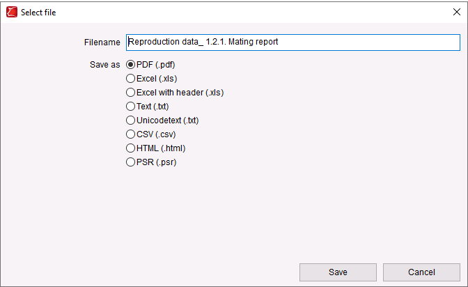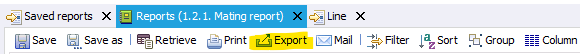 Het is mogelijk om informatie in verschillende formaten te exporteren. Om dit te doen, drukt u op de knop ‘Exporteren’, voert u een naam voor het rapport en het formaat in. Als u op ‘Opslaan’ drukt, verschijnt er rechtsonder in het scherm een downloadvenster. Nadat u het venster hebt bevestigd, wordt er een bestand naar uw lokale pc gedownload.