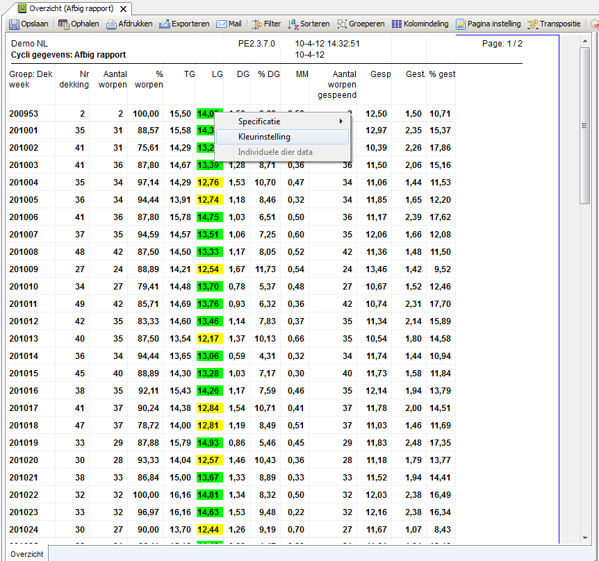 Klik hiervoor in een kolom van het overzicht op de rechtermuisknop en kies voor 'Kleurinstelling'.