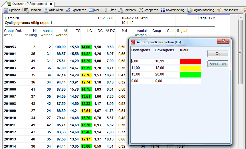 Het is mogelijk om in de overzichten binnen de categorie 'Cycli gegevens of Werklijsten' streefwaarden aan te geven en deze met kleuren weer te geven.