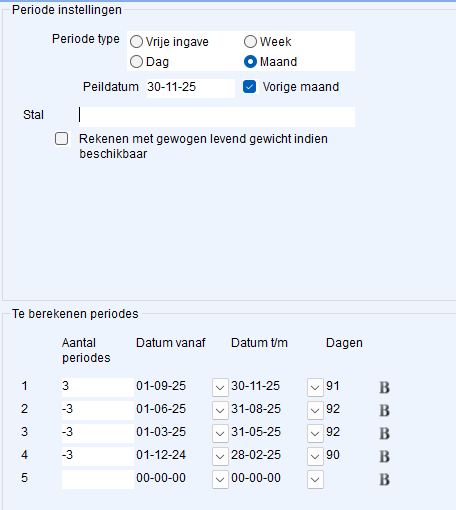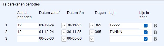Bij Te berekenen periodes geef je aan hoeveel periodes tot en met de peildatum berekend worden.