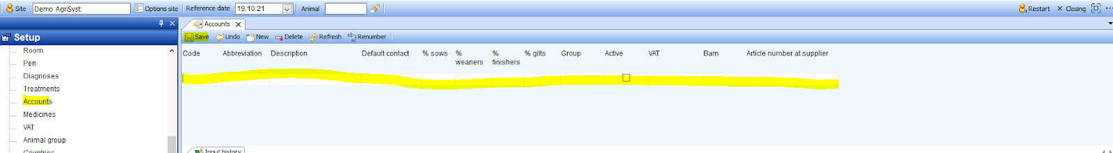 Ga hiervoor naar Setup→ Codes → Kosten/opbrengsten en druk op Nieuw.