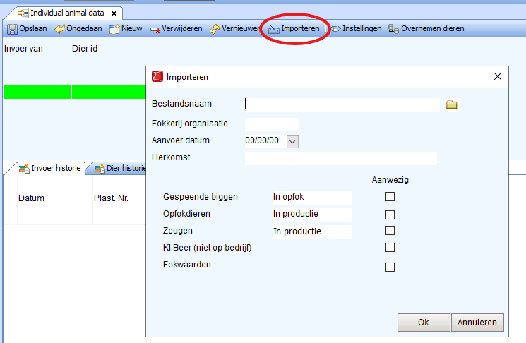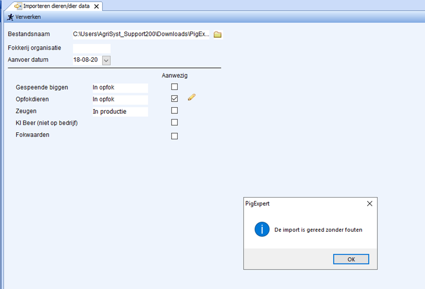 Als alles goed is gegaan klik op Ok en sluit de tab van Importeren dieren/dier data af.