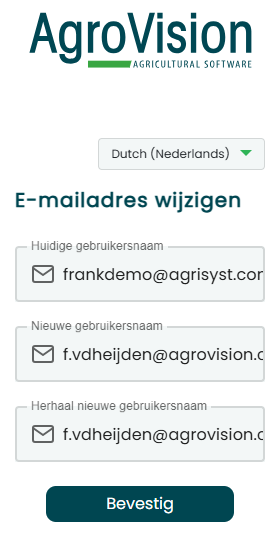 - Nadat je de bevestigingsmail hebt geaccepteerd kan je de stappen voor het registreren voor MyAgrovision opnieuw uitvoeren.