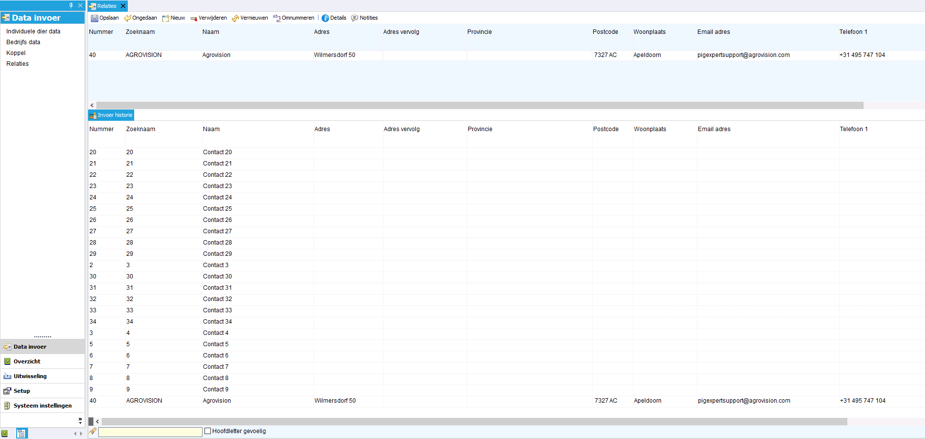 Geef bij Nummer een uniek nummer op, dit nummer kan bij de invoer van gegevens ook worden gebruikt om direct de relatie aan te geven.